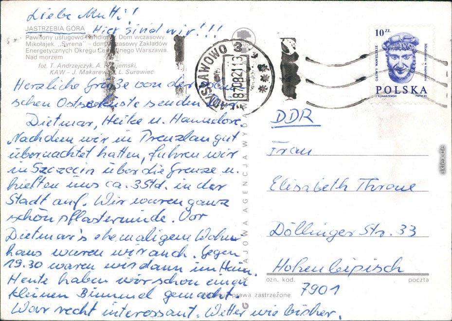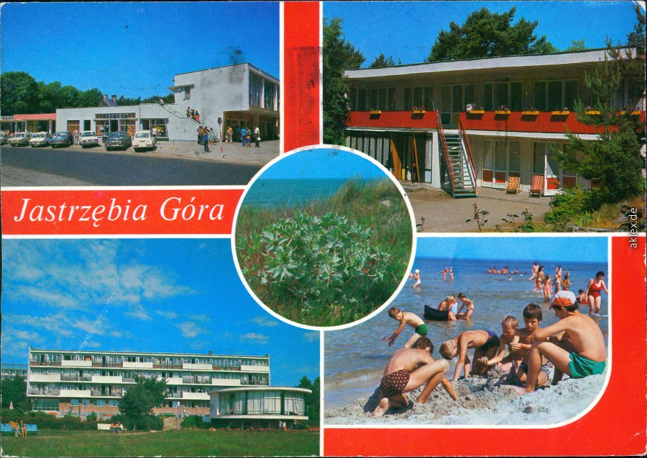 Ansichtskarte: Kaufhalle, Hotels, Strand - Habichtsberg (Jastrzębia Góra)-Großendorf (Władysławowo)