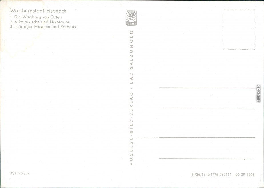 Ansichtskarte: Wartburg von Osten, Nikolaikirche und Nikolaitor, Thüringer Museum und Rathaus - Eisenach