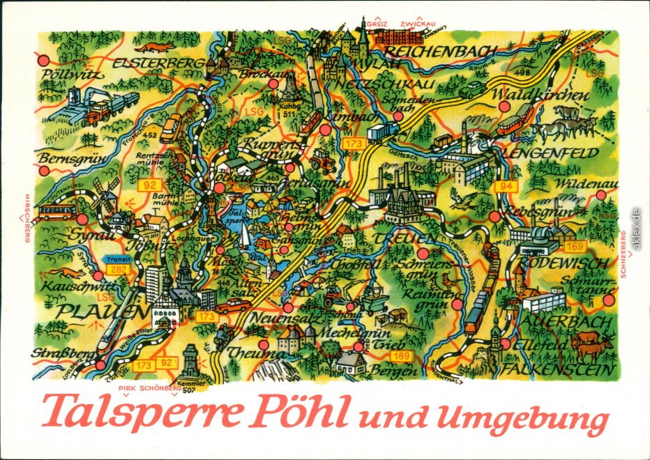 Ansichtskarte: Landkarte: Talsperre Pöhl und Umgebung - Pöhl