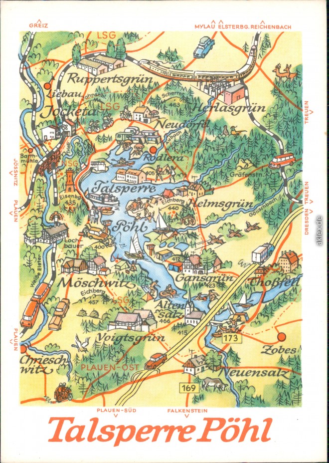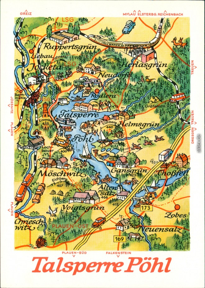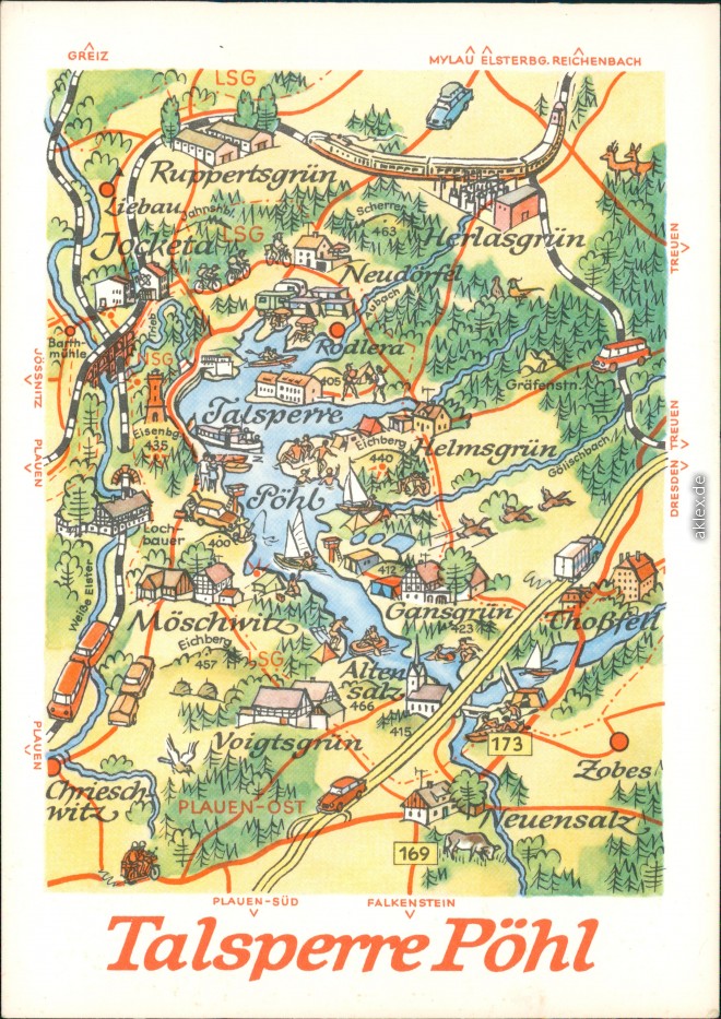 Ansichtskarte: Landkarte: Talsperre Pöhl - Pöhl