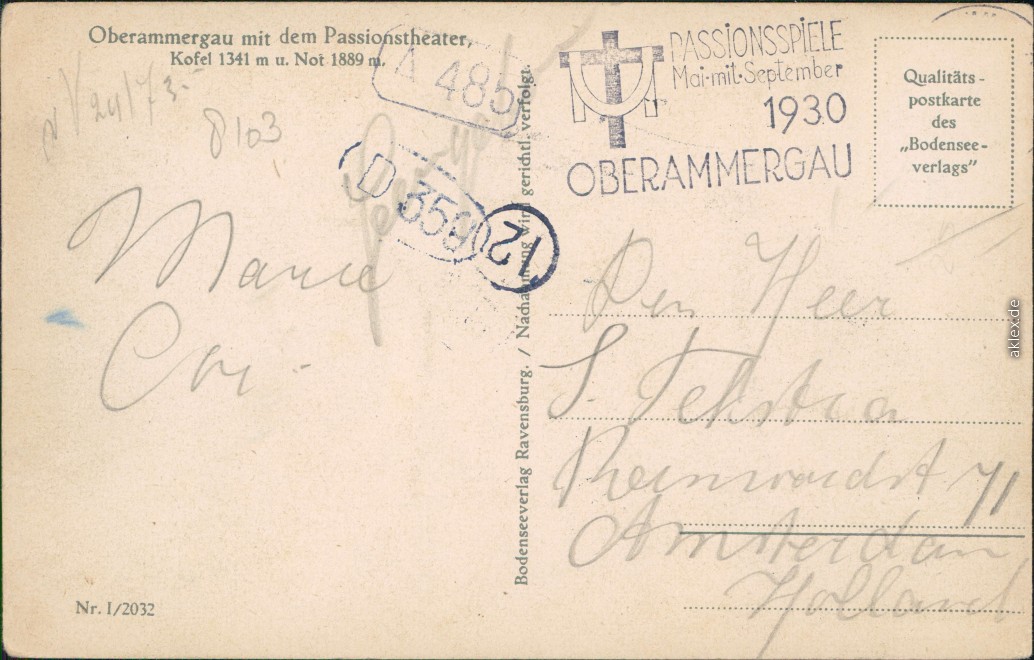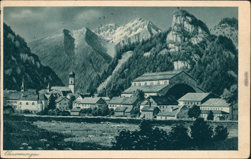 Ansichtskarte: Blick auf Stadt und Passionstheater - Oberammergau
