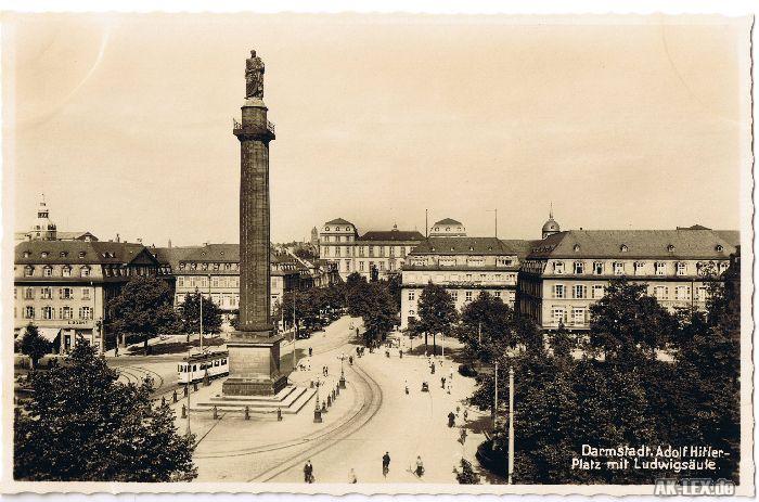 Ansichtskarte: Ludwig-Säule und Platz - Foto AK - Darmstadt
