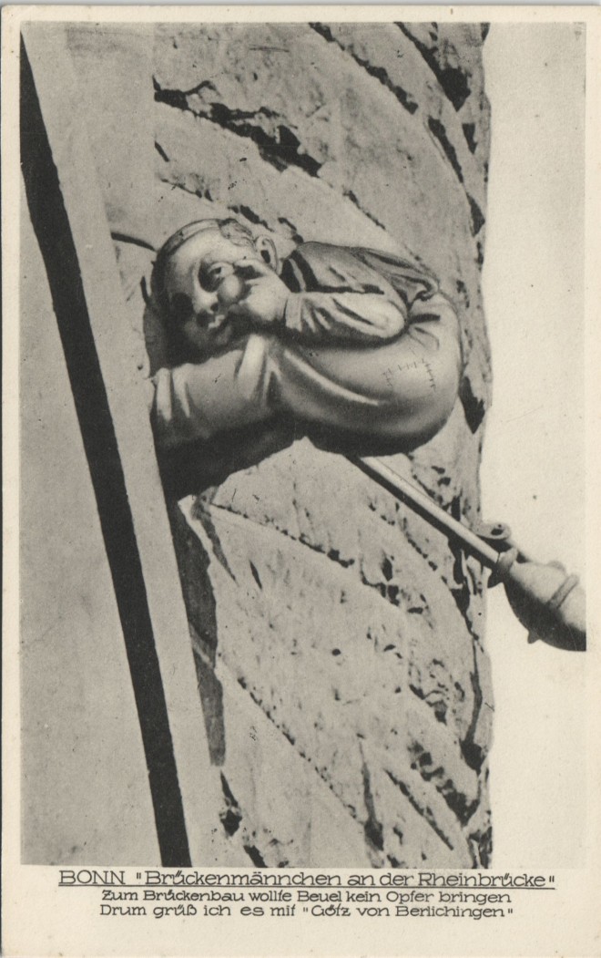 Ansichtskarte: Brückenmännchen an der Rheinbrücke - Bonn