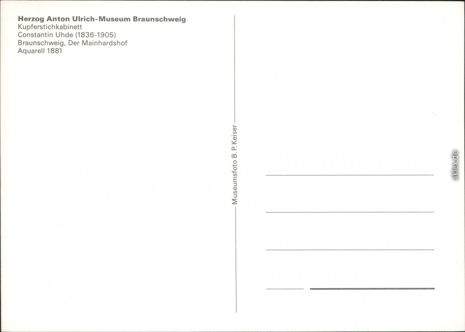 Ansichtskarte: Künstlerkarte: Aquarell von C. Uhde "der Mainhardshof" - Braunschweig