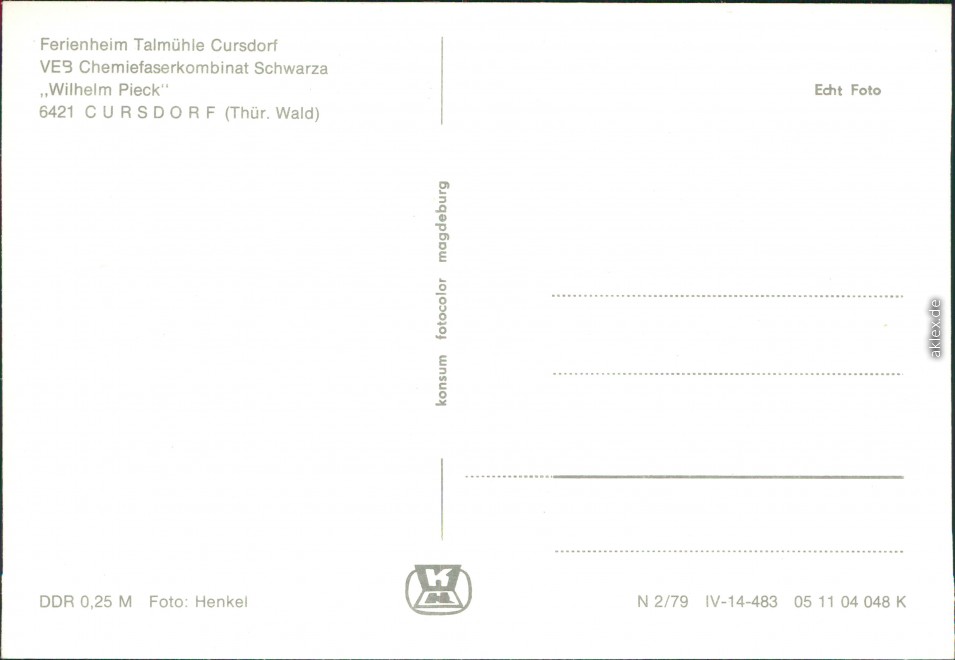 Ansichtskarte: Cursdorf Ferienheim Talmühle des VEB - Cursdorf