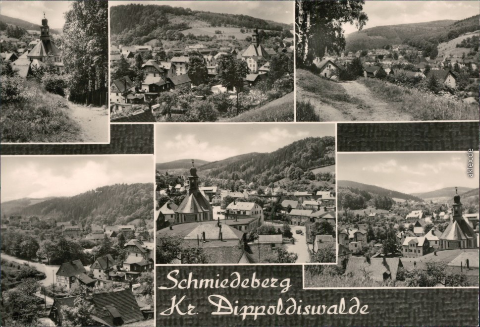 Ansichtskarte: Panorama, Kirche - Schmiedeberg (Erzgebirge)-Dippoldiswalde