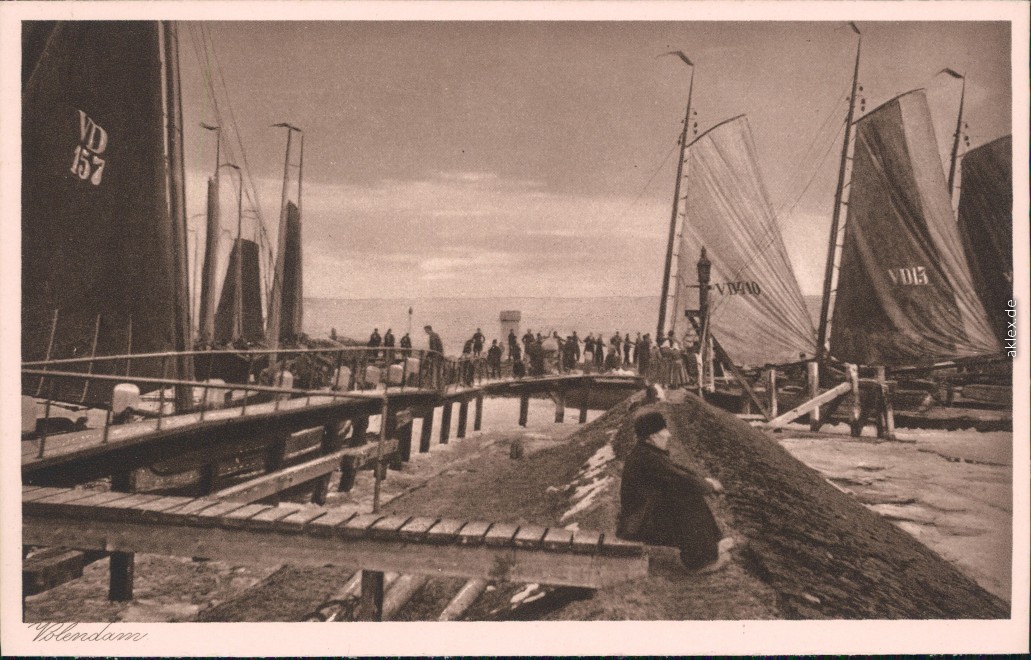 Ansichtskarte: Partie am Hafen - Steg, Segelboote - Volendam-Edam-Volendam
