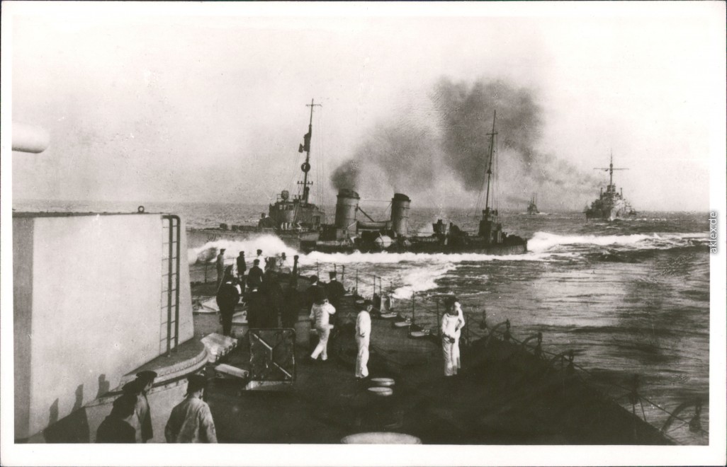 Ansichtskarte: Schiffe/Schifffahrt - Kriegsschiffe (Marine) - im Konvoi