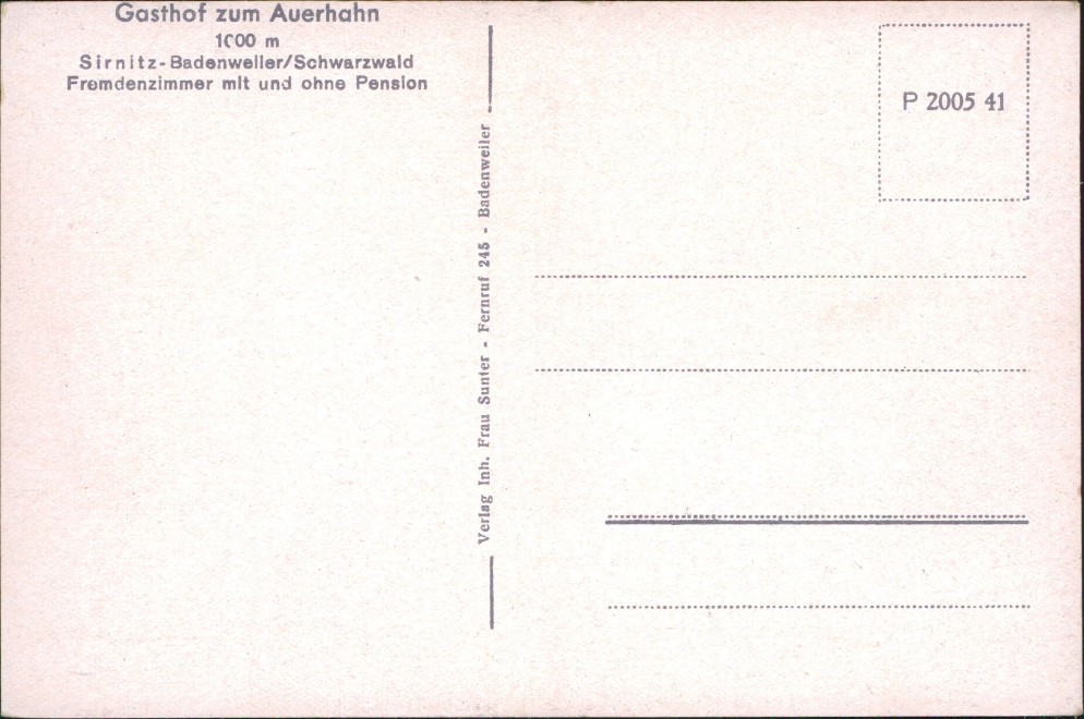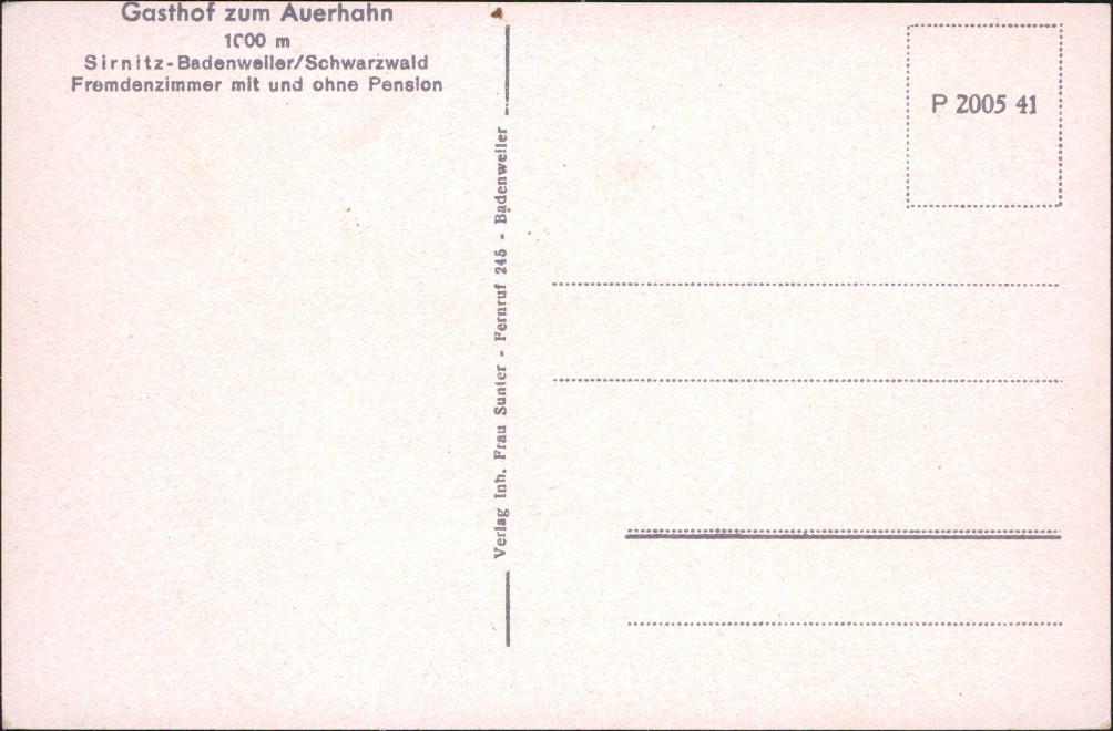 - Ansichtskarte Badenweiler Gasthof zum Auerhahn 1941