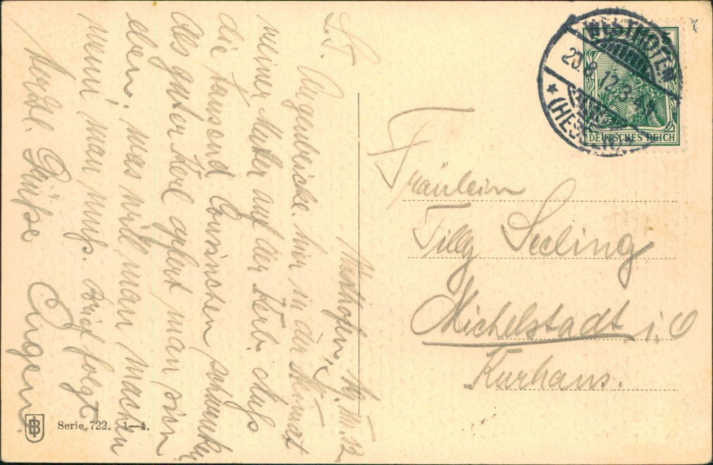 Ansichtskarte: Möwen über Flusslandschaft, Stempel: Westhofen Hessen