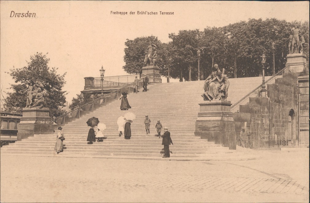 Ansichtskarte: Freitreppe der Brühlschen Terrasse / Terassenufer - Innere Altstadt-Dresden
