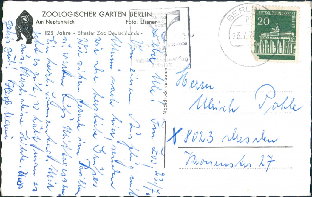 Ansichtskarte: Zoologischer Garten - am Neptunteich - Tiergarten-Berlin