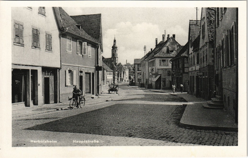Ansichtskarte: Hauptstraße mit Fahrradfahrer - Herbolzheim