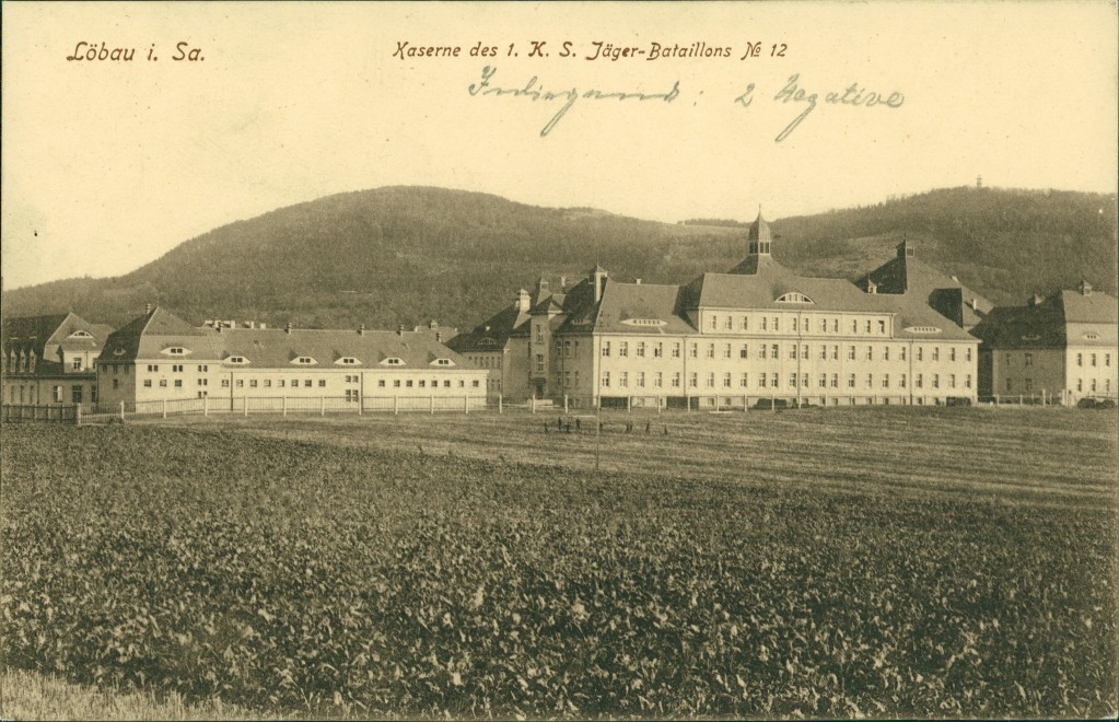 Ansichtskarte: Kaserne des 1. K.S. Jäger Bataillons No 12 - Löbau