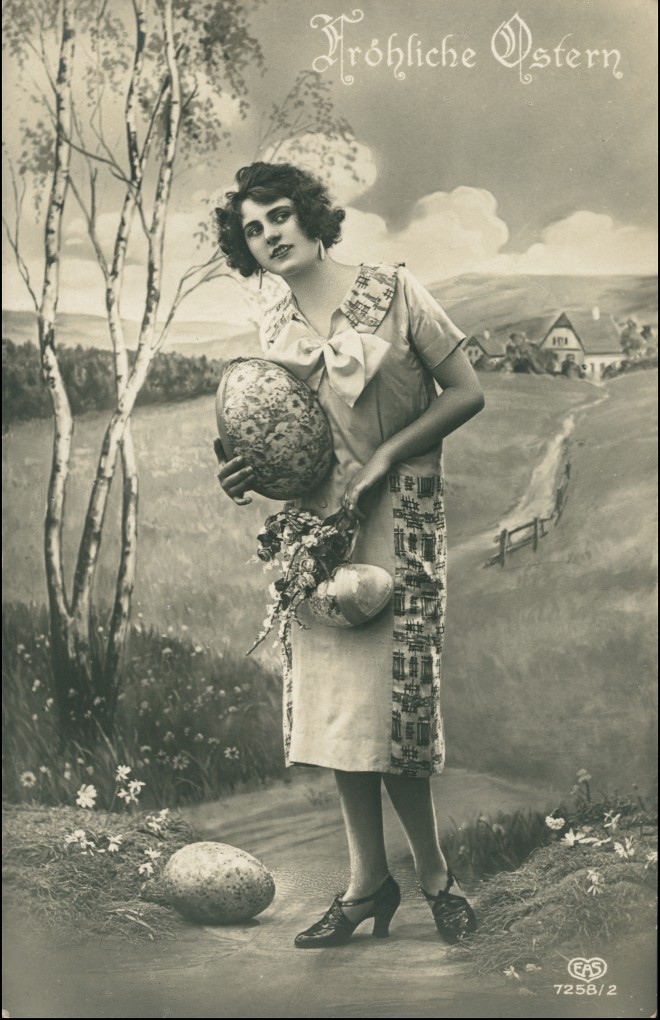 Ansichtskarte: Glückwunsch/Grußkarten: Ostern - Frau mit Osterei in der Hand