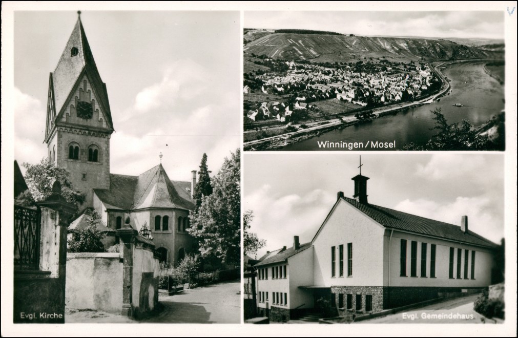 Ansichtskarte: 3 Bild: Kirche, Gemeindehaus - Winningen