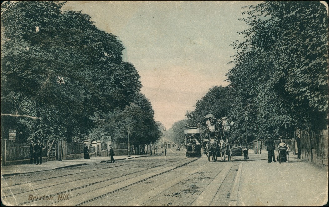 Foto Karte: Strassen Partie Street View Cable Car Pferde Kutsche - Brixton Hill-London