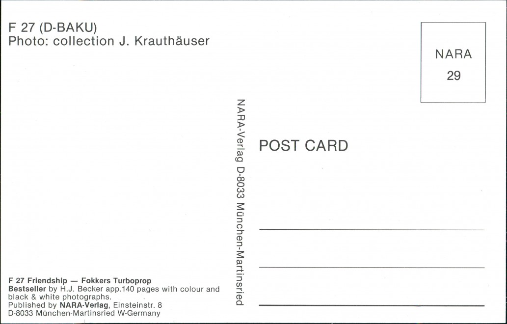 Ansichtskarte: Flugzeug F 27 Friendship - Fokkers Turboprop (D-BAKU) WDL
