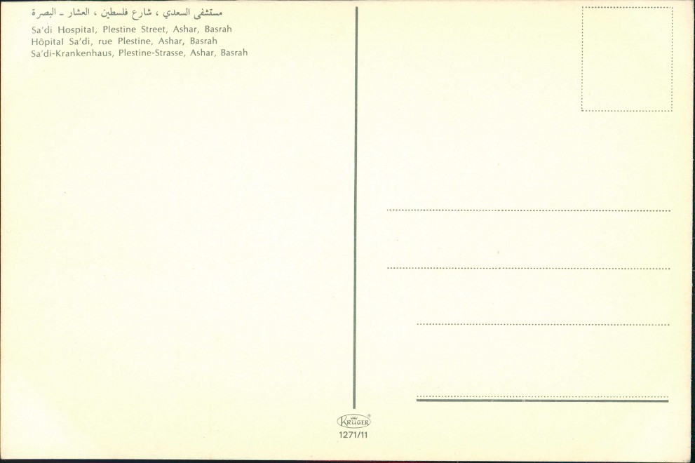 Ansichtskarte: الكويت Sa'di-Krankenhaus, Plestine-Strasse, Ashar, Basrah - Basrah Basra