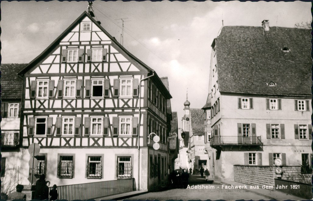 Foto Karte: Strassen Partie Fachwerk Häuser aus dem Jahr 1821 - Adelsheim