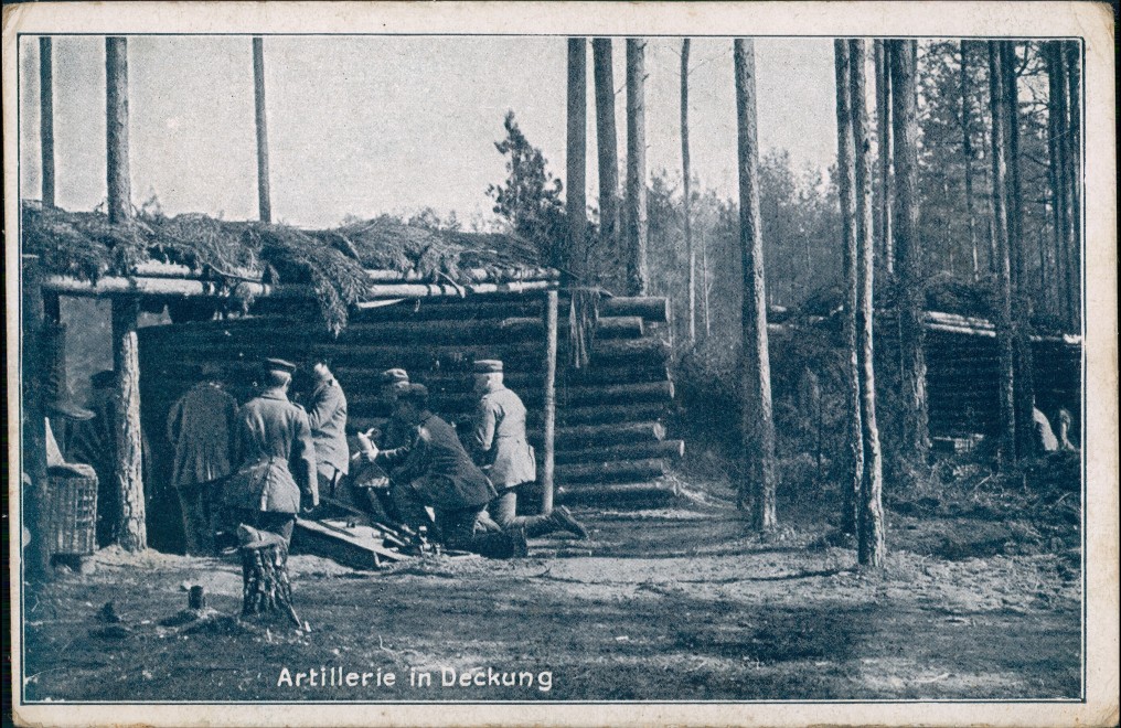 Foto Karte: Artellerie Deckung Holz Verhau beim Bau im Wald