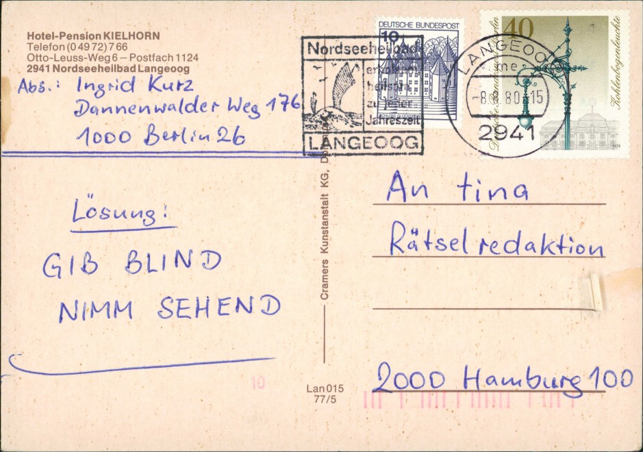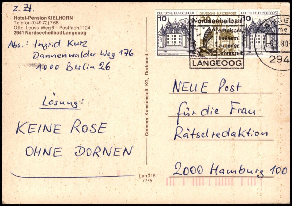 diese Karte können Sie hier kaufen:- Ansichtskarte Langeoog Hotel-Pension KIELHORN MB 1977