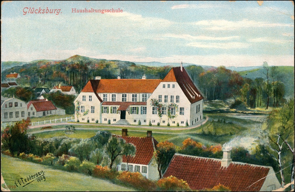 Ansichtskarte: Haushaltungsschule Künstlerkarte Feddersen - Glücksburg (Ostsee)
