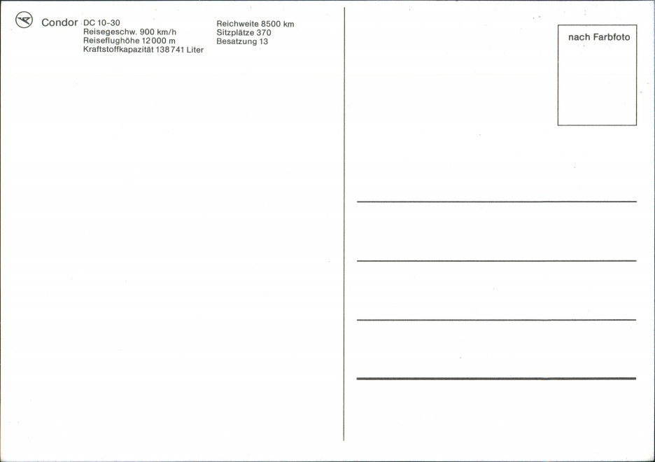 Ansichtskarte: Condor DC 10-30 Flugwesen - Flugzeuge