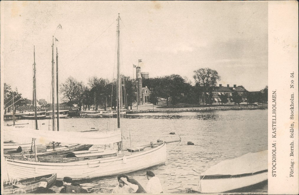 Foto Karte: KASTELLHOLMEN Panorama mit Segeljacht Hafen - Stockholm