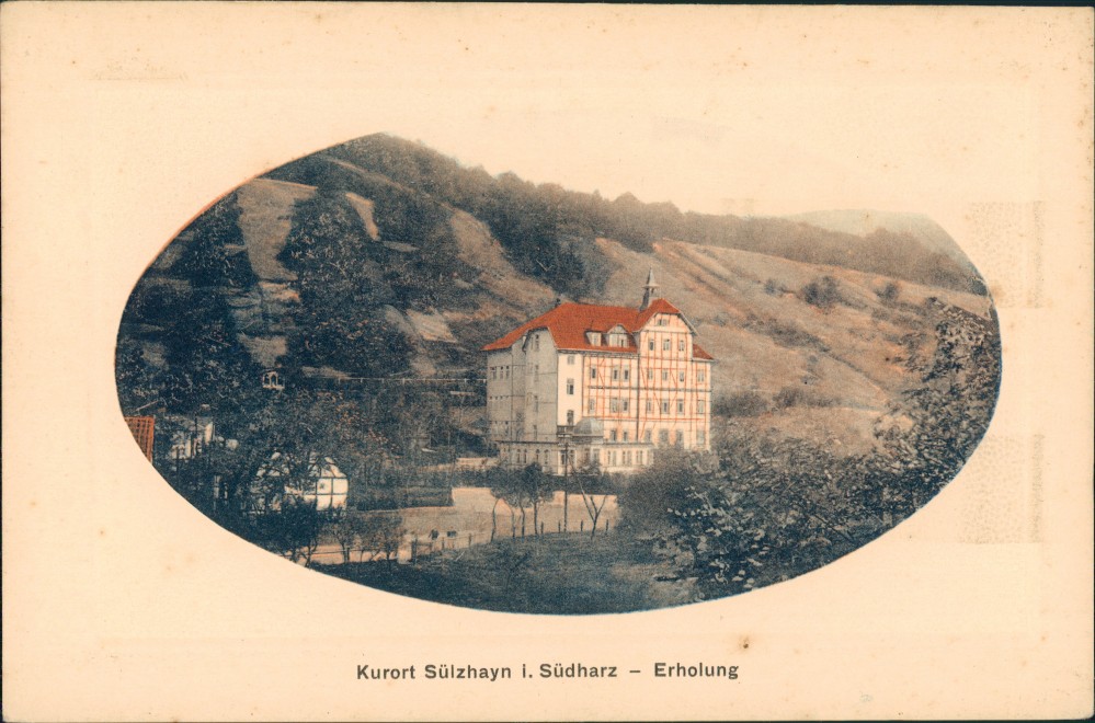 historische Ansichtskarte von 1910: Paspartout Ansicht Partie am Erholungsheim:: Sülzhayn-Ellrich Adressseite Detailbild Detailbild