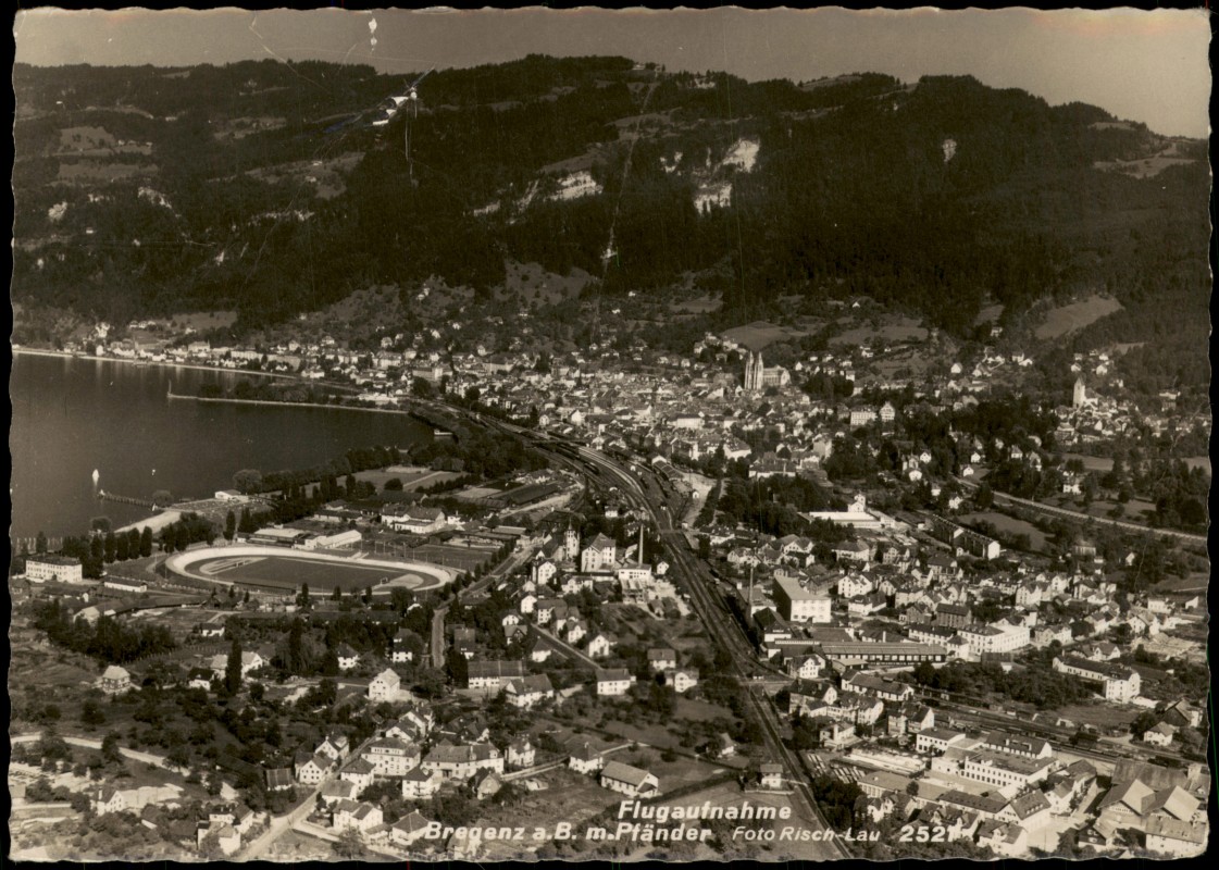 - Ansichtskarte Bregenz a.Bodensee m. Pfänder Luftbild Stadion 1955