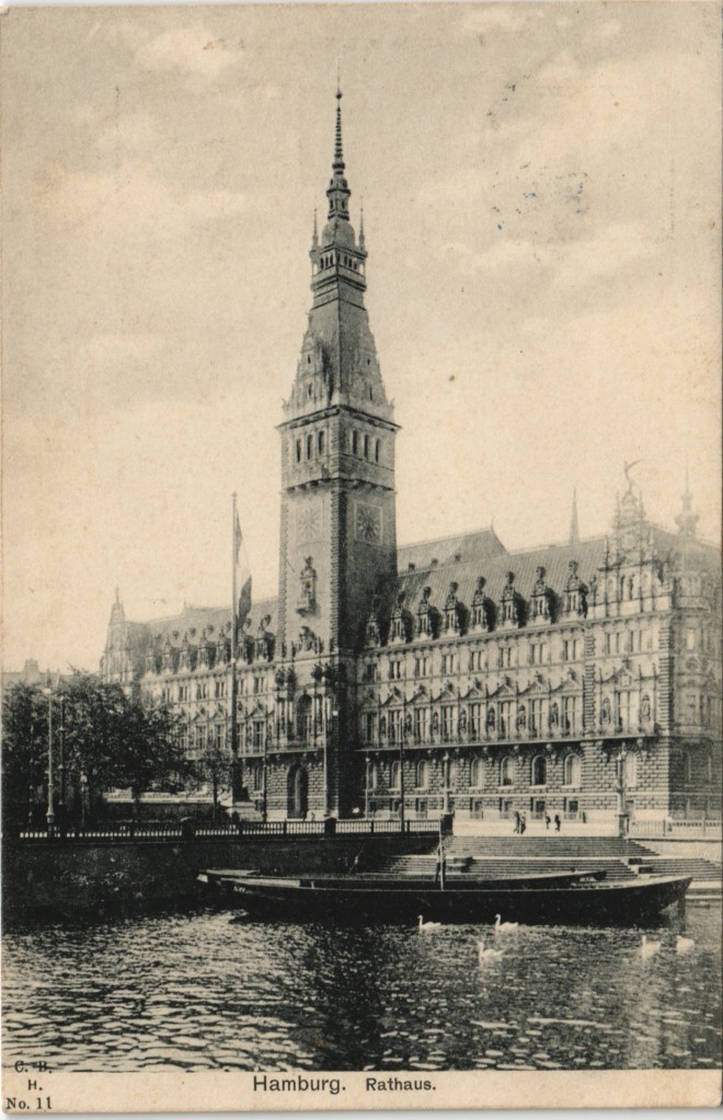Ansichtskarte: Rathaus, Boot - Hamburg