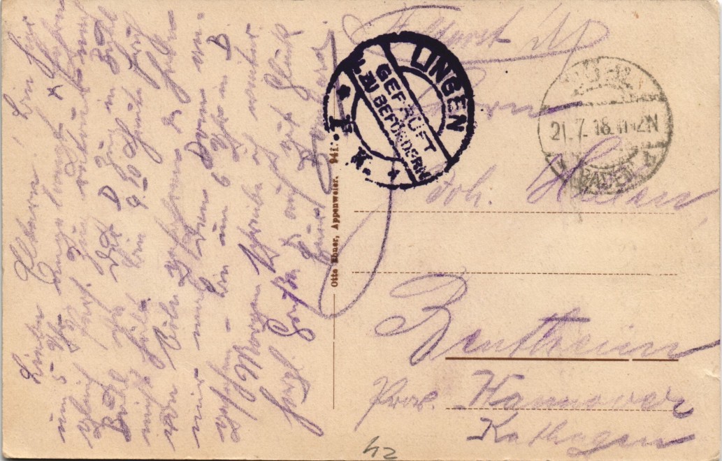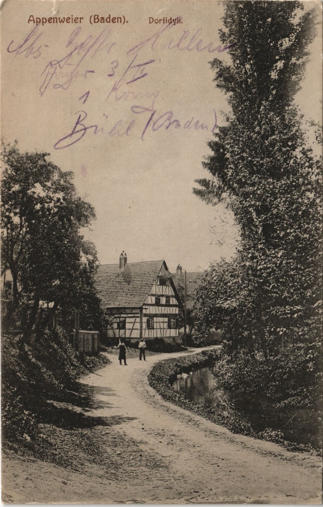 Ansichtskarte: Straße gel. mit Zensurstempel WK1 - Appenweier