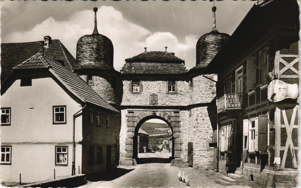 Ansichtskarte: Gänse, Straßenpartie am Stadttor - Tann