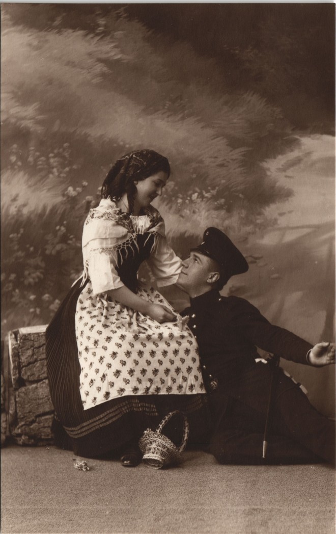 - Soldat liegt verliebt vor Frau, Atelierfoto Militaria