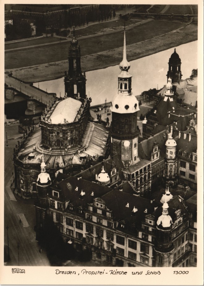 Ansichtskarte: Blick auf Schloß und Probstei-Kirche - Innere Altstadt-Dresden