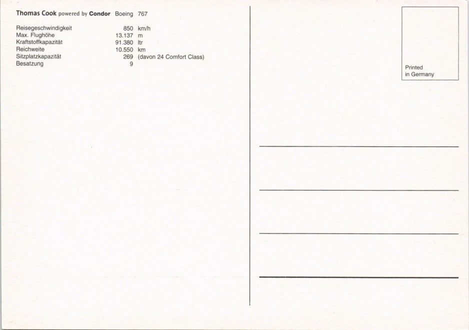 Foto Karte: Condor Boeing 767 Reiseflieger der Thomas Cook