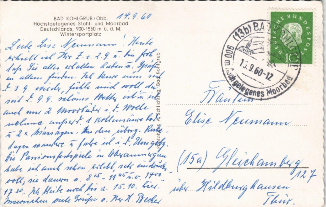 Foto Karte: Panorama-Ansicht mit Kurhäuser und Ammergebirge - Bad Kohlgrub