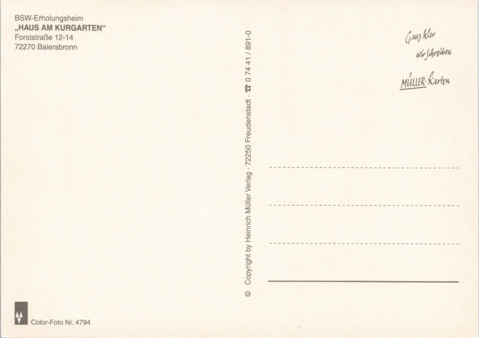 Foto Karte: BSW-Erholungsheim HAUS AM KURGARTEN - Baiersbronn