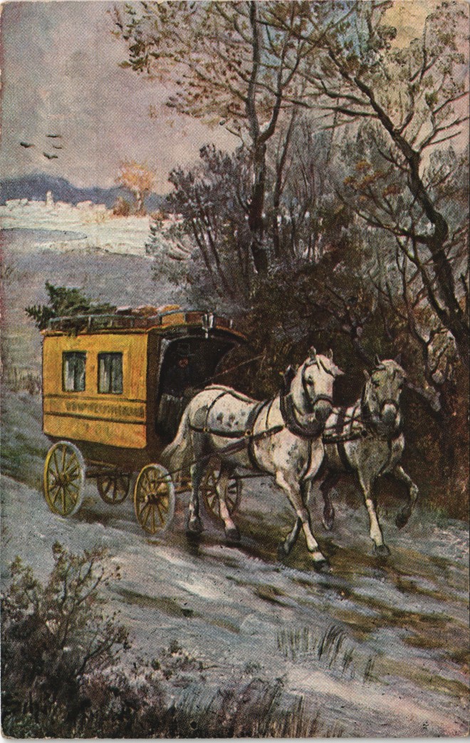 - Postkutsche, Künstlerkarte gel. Feldpost