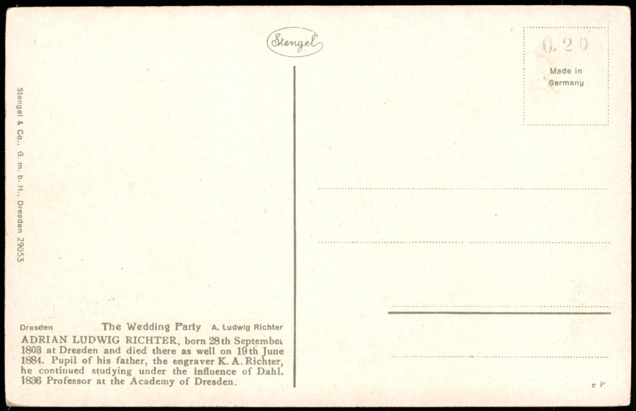 historische Ansichtskarte von 1910: Der Brautzug ADRIAN LUDWIG RICHTER, Künstlerkarte:: Adressseite Detailbild Detailbild