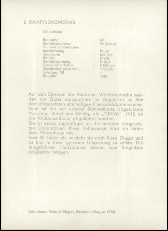 - Eisenbahn Dampflokomotive DDR Sammelkarte Muskau Waldeisenbahn