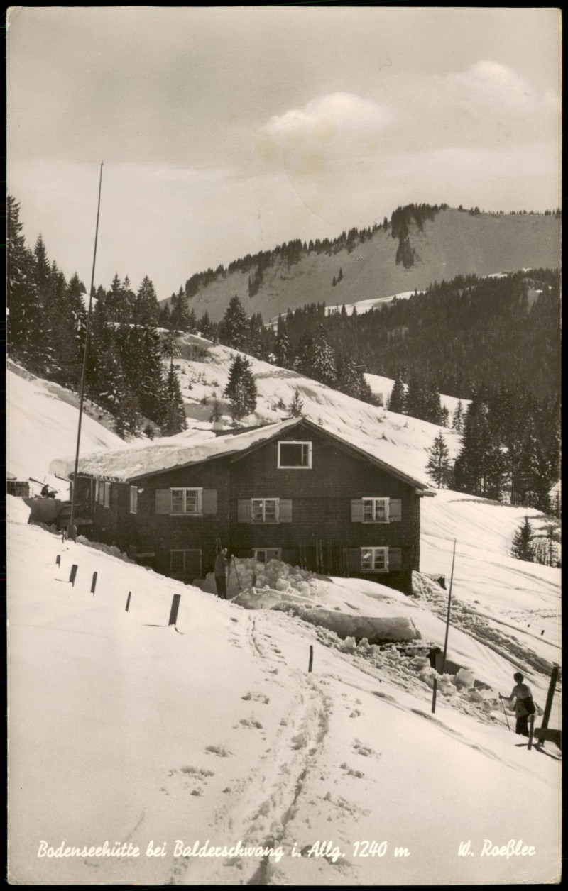 Ansichtskarte: Bodenseehütte im Winter Skiläufer - Balderschwang