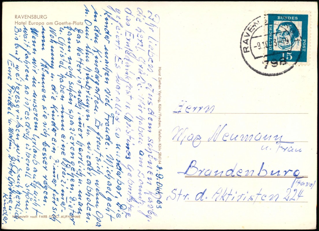 Ansichtskarte: Hotel Europa am Goethe Platz - Ravensburg