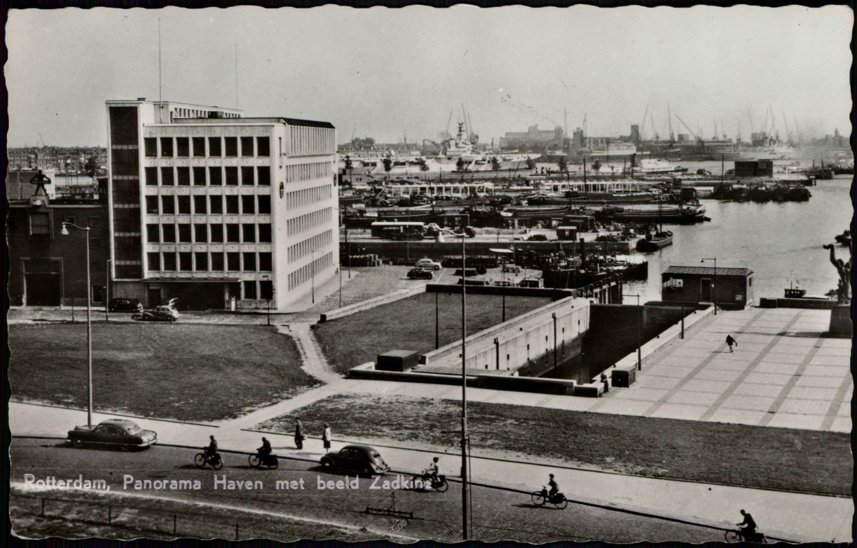 Foto Karte: Panorama Haven met beeld Zadkina - Rotterdam