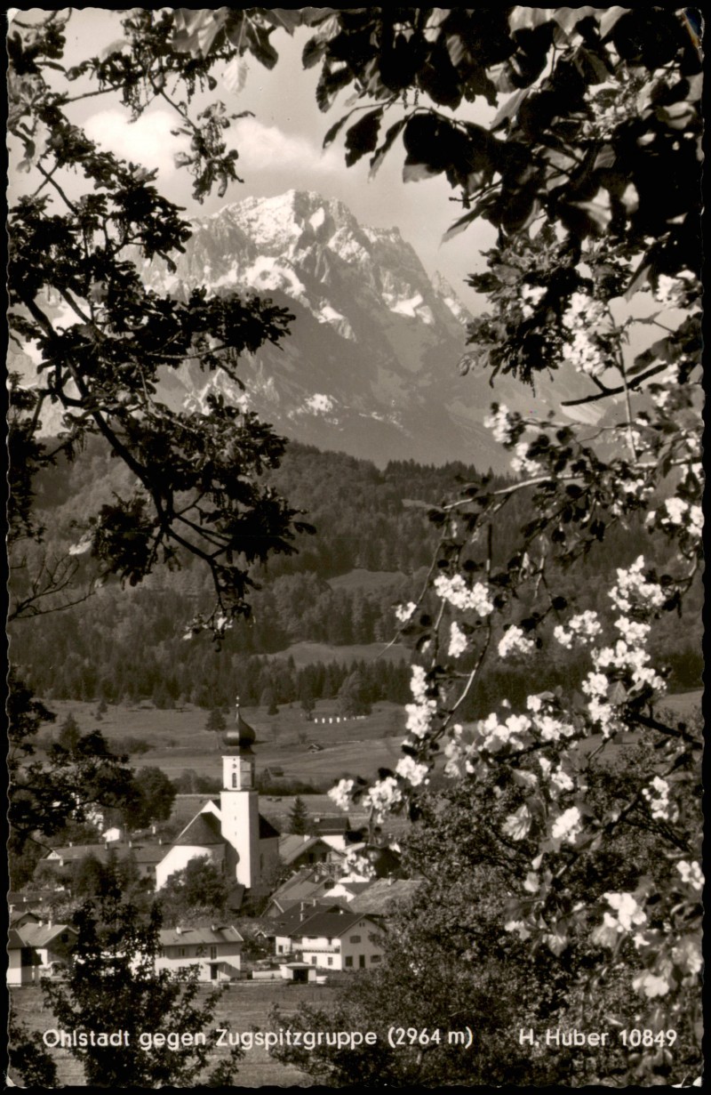 Ansichtskarte: Blick auf die Stadt - Baumblüte - Ohlstadt