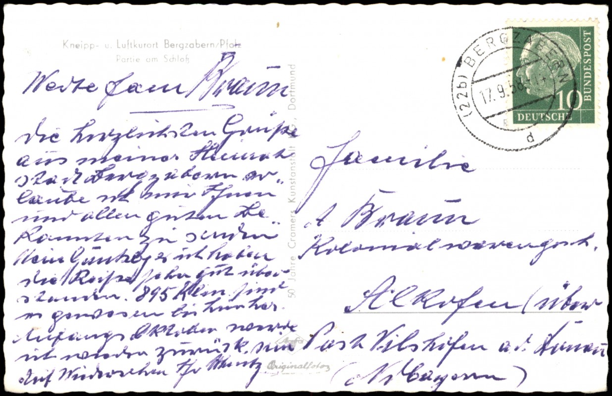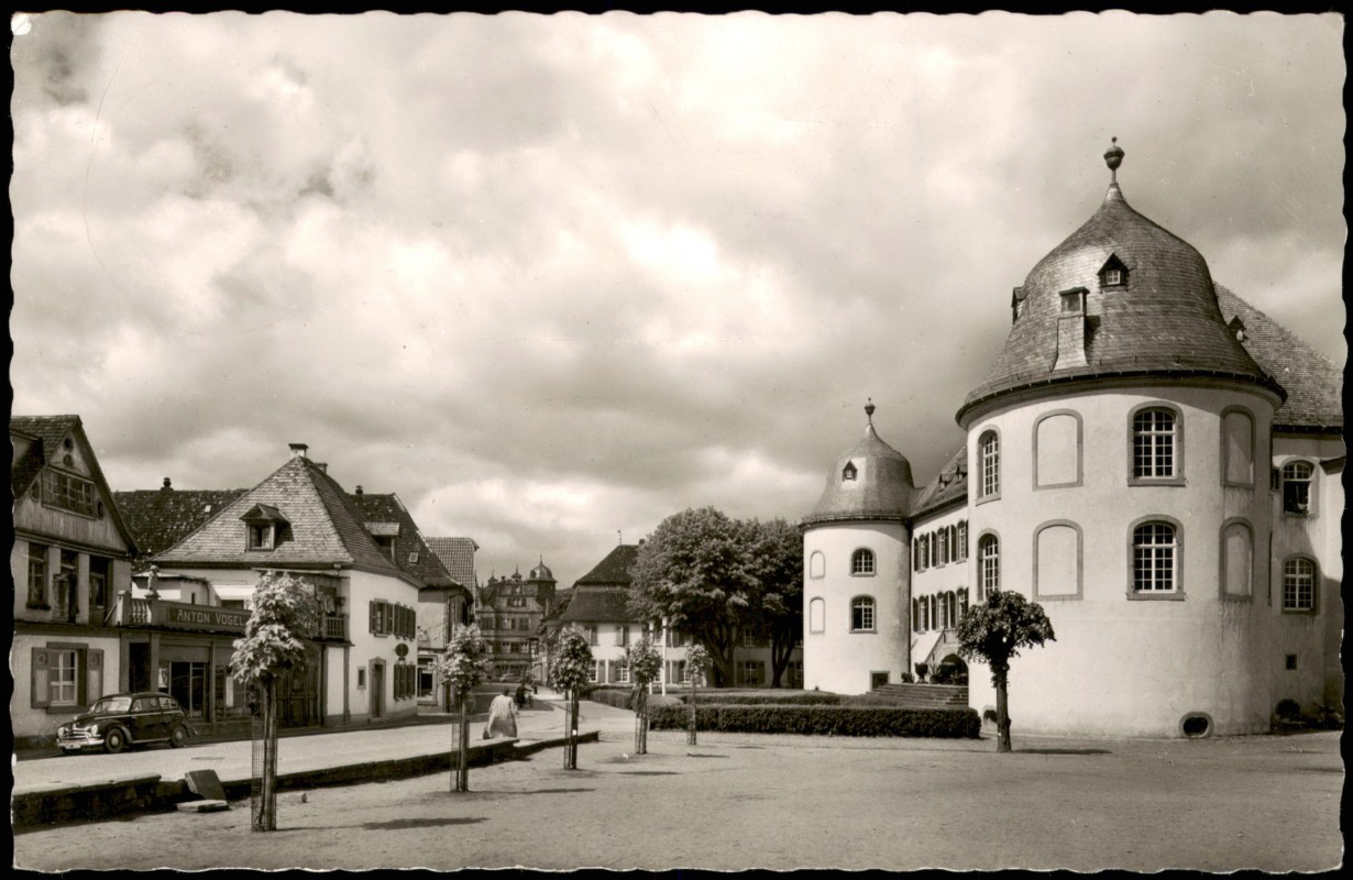 Ansichtskarte: Straßenpartie am Schloß - Bergzabern