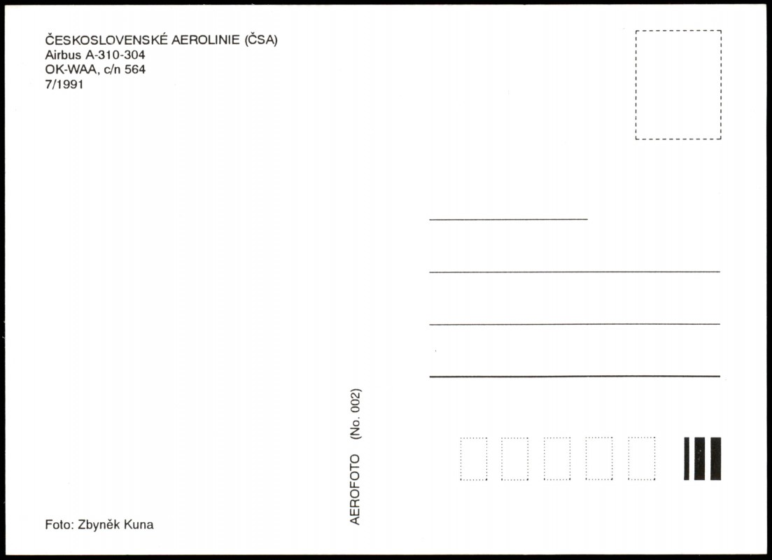 Ansichtskarte: ČESKOSLOVENSKÉ AEROLINIE (ČSA) Airbus A-310-304 Flugzeuge - Airplane