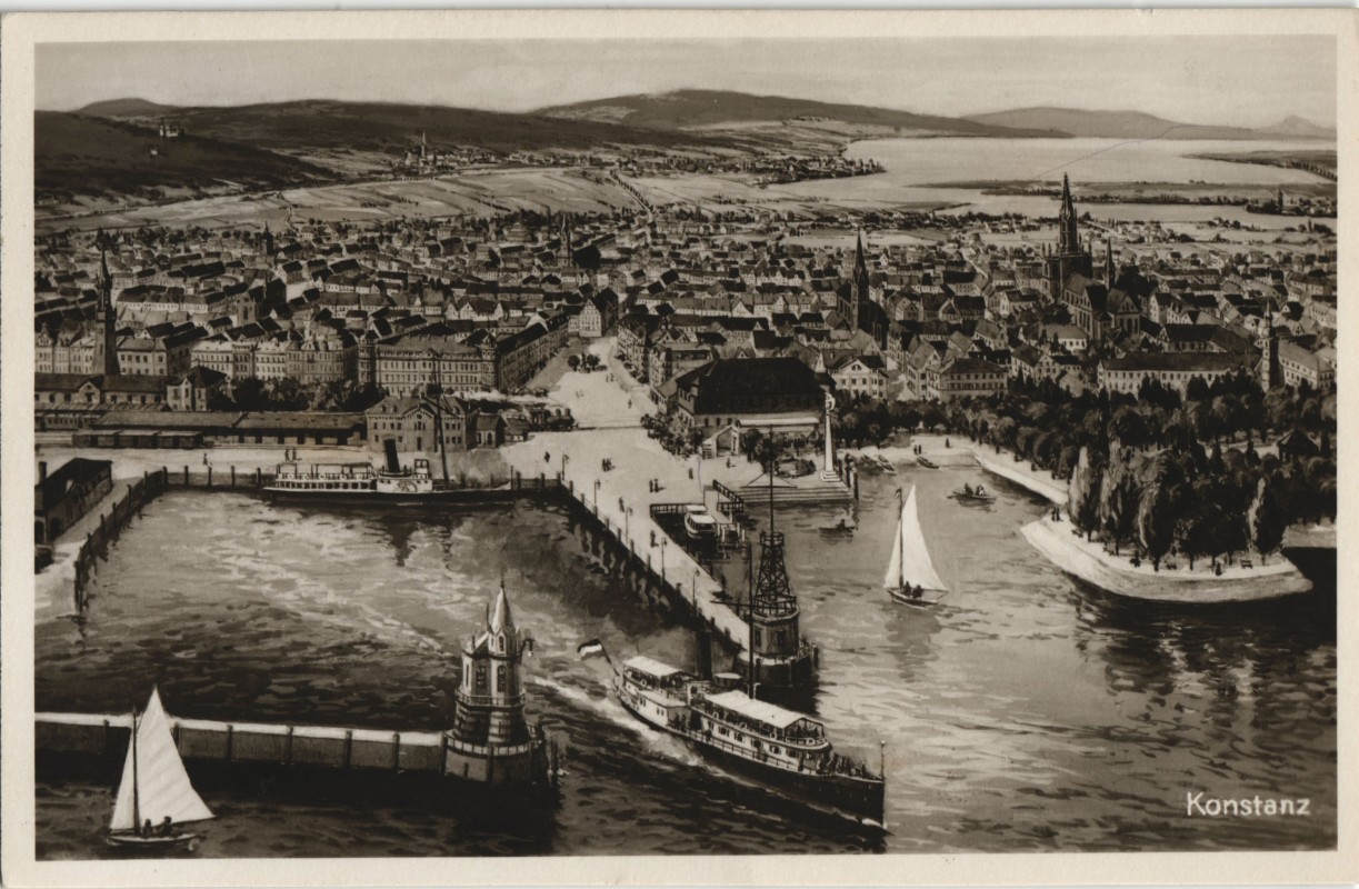 Ansichtskarte: Panorama-Ansicht, Stadt-Panorama mit Hafen - Konstanz