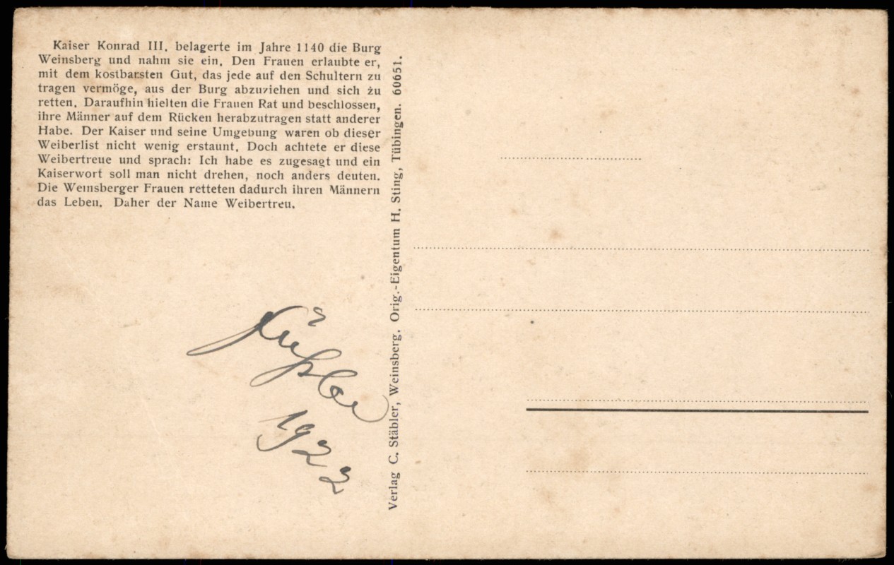 Ansichtskarte: Burgruine Weibertreu - Künstlerkarte - Weinsberg